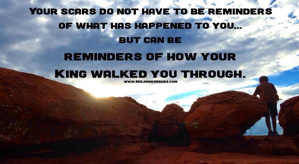 Your scars are not reminders of what has happened to you; rather, reminders of how your King walked you through.