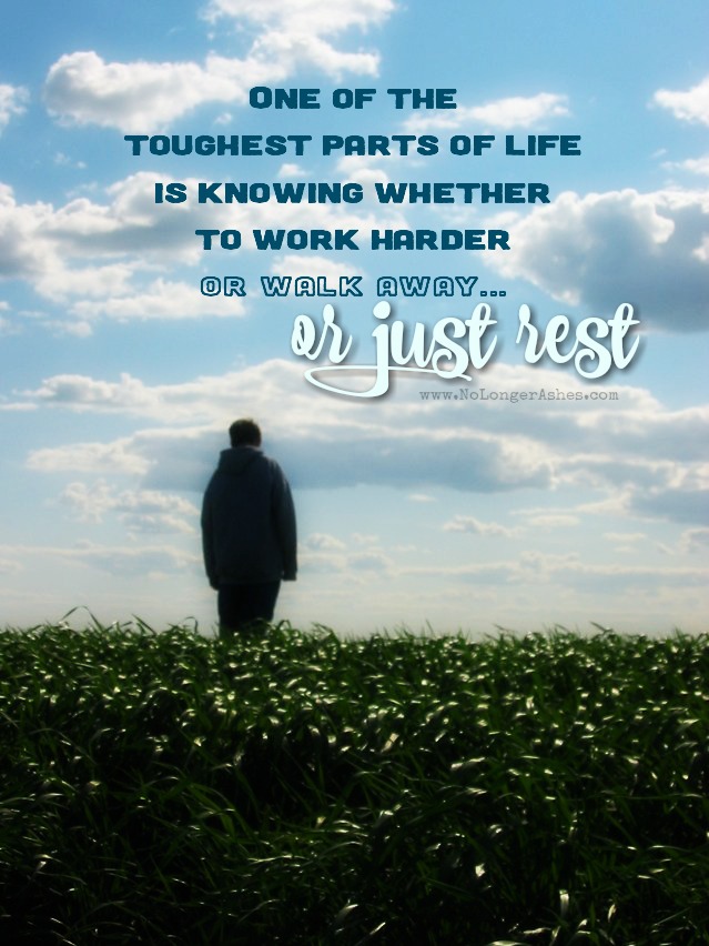 “One of the toughest parts of life is knowing whether to work harder or walk away.”